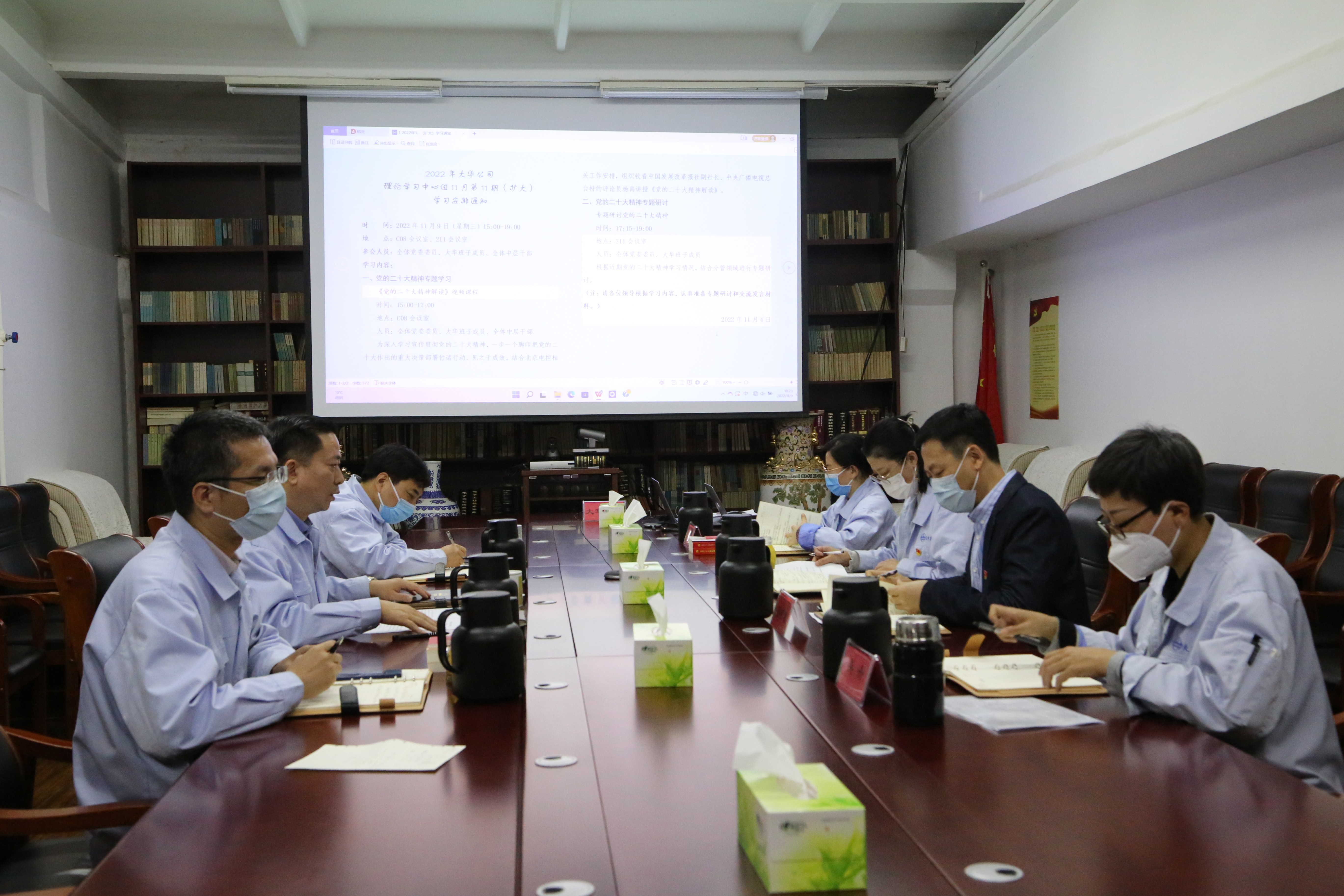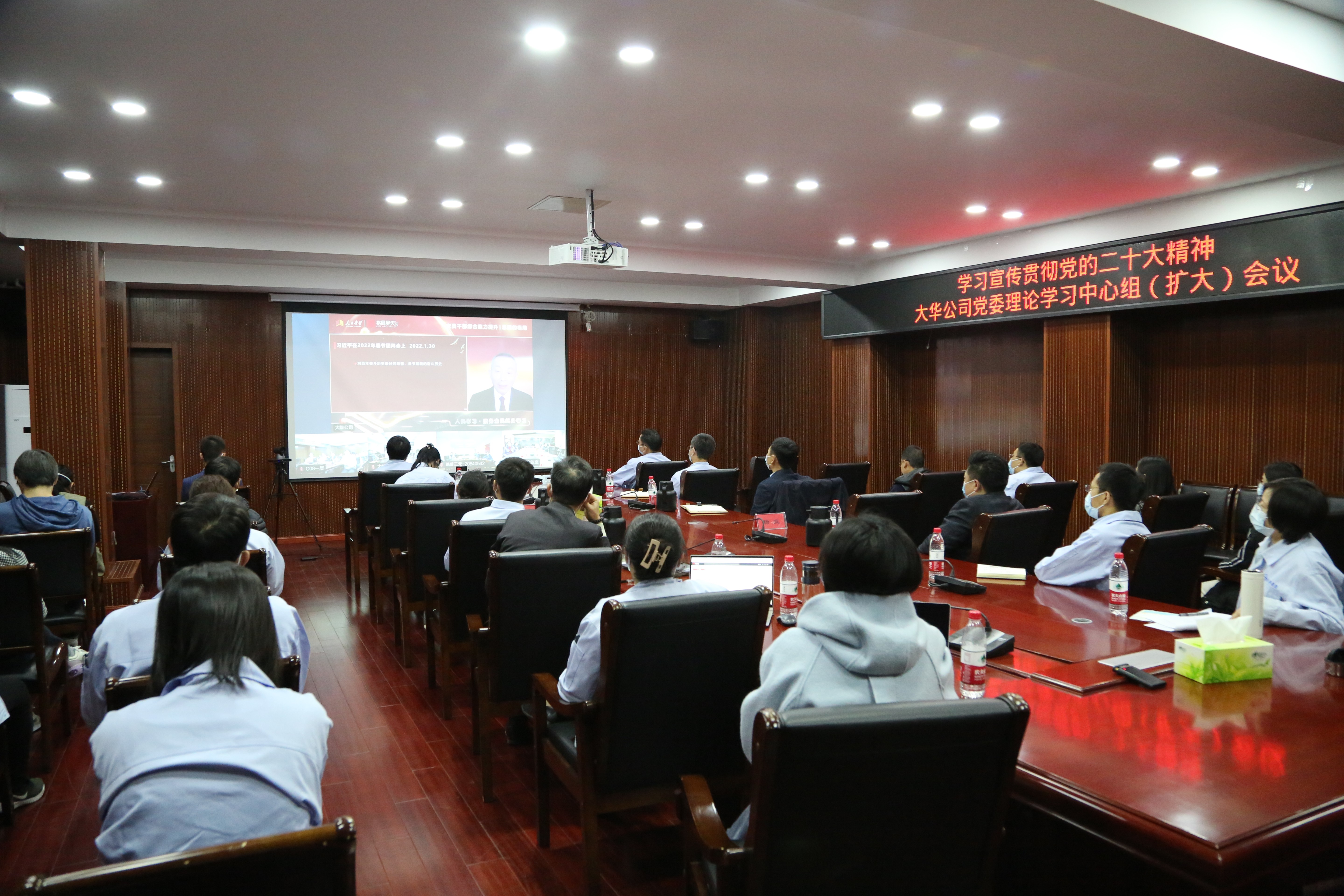 11月9日下午,大華公司組織理論學習中心組(擴大)會議,公司領導班子、全體中層干部、各支部黨員群眾近百人,分別在768園區(qū)主會場和瑞普三元、大華品耐等4個視頻分會場,專題學習《黨的二十大精神解讀》直播課程。學習結束后,中心組成員結合分管領域專題研討黨的二十大精神,公司黨委書記、董事長董永生主持研討。